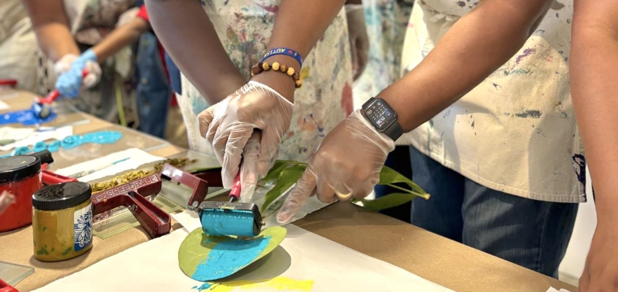 A team of artists from The Current: Baha Mar Gallery & Art Center including Jordanna Kelly, Assistant Director of Art Curation; Averia Wright, Curatorial Manager; and Shanise Poitier, Programming and Studio Coordinator, provided leaves from seagrape, cocoplum, and other indigenous trees and donated the art supplies used to complete the printing process. The children, guided by parents, aides, and The Current Gallery facilitators, enthusiastically explored their artistic talents by creating unique prints using the leaves and paint. Cruise passengers of all ages also joined in the fun.